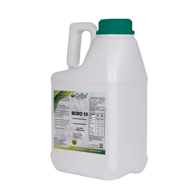 Boro 10 é um fertilizante líquido que disponibiliza alto teor de boro para as plantas, pode ser usado em todas as culturas durante todo ciclo vegetativo, melhorando a florada e proporcionando maior produtividade.